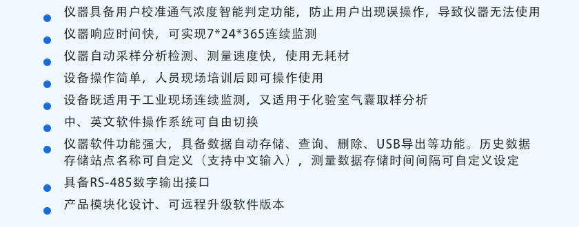 (10)設備既適用于工業(yè)現(xiàn)場連續(xù)監(jiān)測,又適用于化驗室氣囊取樣分析