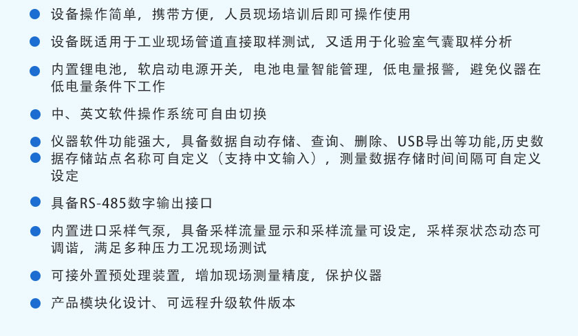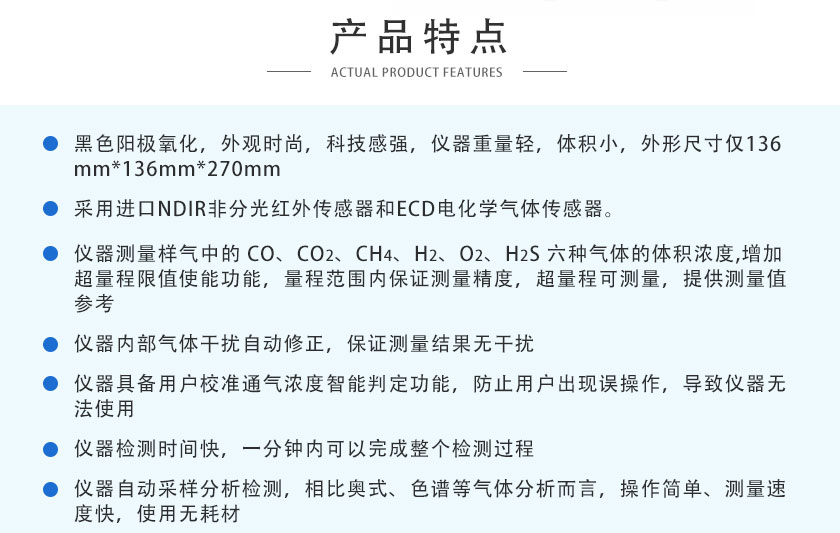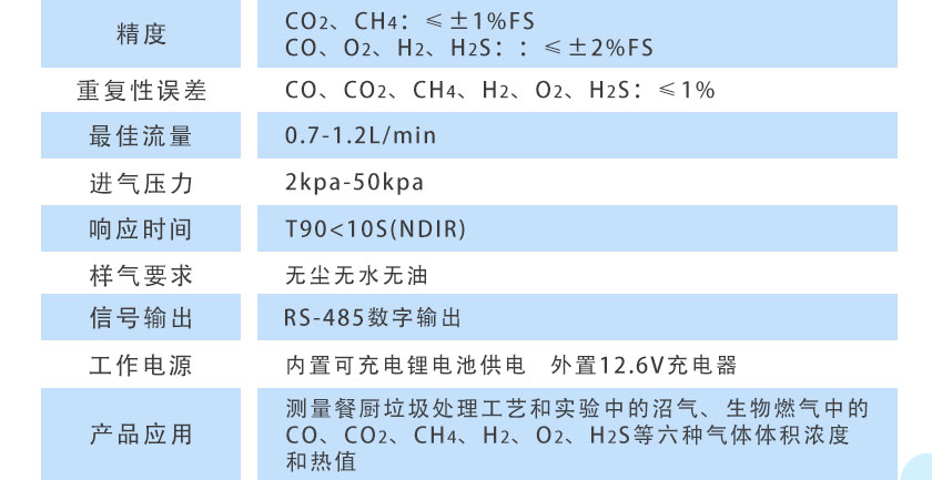 CO、CO2、CH4:NDIR非分光紅外;H2:TCD熱導(dǎo); O2、H2S:ECD電化學(xué) |